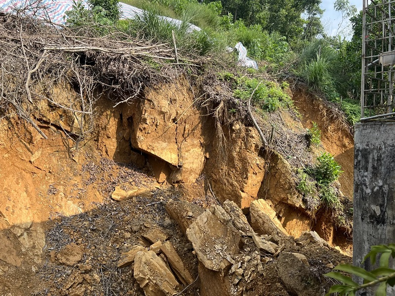 Đáng lưu ý, qua kiểm tra hiện trạng khu vực có nguy cơ sạt lở là đất rừng sản xuất của 10 hộ gia đình có chiều dài khoảng 264m. Khu vực này có địa hình đồi núi cao, độ dốc lớn, kết cấu đất yếu nên dễ xảy ra hiện tượng trượt, lở đất sau mưa ảnh hưởng trực tiếp đến 31 hộ đang ở sinh sống tiếp giáp với diện tích đất trồng rừng sản xuất.