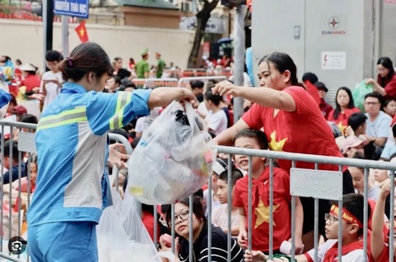 Càng gần đến thời điểm diễn ra lễ diễu binh, diễu hành mừng Quốc khánh 2/9, lượng người dân đổ về Hà Nội càng đông. Điều này khiến lượng rác thải phát sinh sẽ tăng, gây áp lực lên công tác vệ sinh môi trường và gánh nặng cho những công nhân.