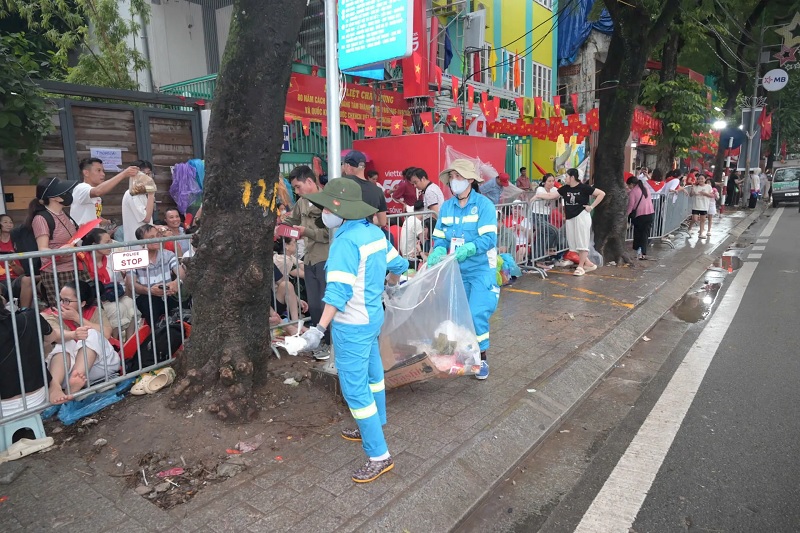 Sau khi kết thúc diễu binh, diễu hành, các phương tiện ngay lập tức có mặt triển khai công tác thu gom, vận chuyển và làm sạch, đặc biệt tại các khu vực quảng trường, ngã tư, ngã 5 rộng lớn, thực hiện công tác quét, hút bằng cơ giới. Đặc biệt là phối hợp với Bộ Tư lệnh Lăng bố trí lao động, phương tiện tăng cường thu cẩu rác phát sinh từ khu vực khán đài, tại các khu vực xung quanh Quảng trường Ba Đình đảm bảo sạch sẽ.