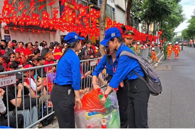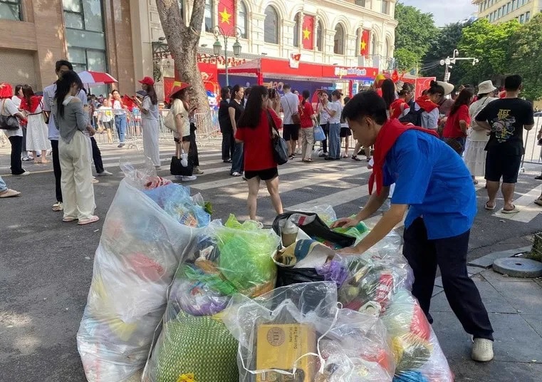 TP đã bố trí chuẩn bị hơn 8.000 thùng rác nhỏ và 500 thùng rác lớn được đặt tại các điểm công cộng, giúp việc thu gom rác thải trở nên thuận tiện, hiệu quả; trung bình cứ 50m lại có một công nhân VSMT trực tiếp hướng dẫn người dân bỏ rác đúng nơi quy định. Đặc biệt, 8.800 thanh niên tình nguyện của Thành đoàn Hà Nội đã được huy động tham gia, vừa hỗ trợ người dân xử lý rác thải, vừa truyền tải thông điệp về việc giữ gìn môi trường xanh - sạch - đẹp, góp phần tạo nên một đại lễ an toàn, văn minh và ý nghĩa.