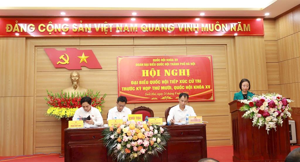 Cử tri các xã: Ô Diên, Tùng Thiện, Phúc Lộc, Đoài Phương phản ánh các vấn đề liên quan đến giải phóng mặt bằng, an ninh trật tự, phòng, chống tội phạm công nghệ cao; đồng thời, kiến nghị rà soát những thôn chưa có nhà văn hóa để bổ sung đầu tư, đáp ứng nhu cầu sinh hoạt cộng đồng; kiến nghị xử lý tình trạng xây dựng, chuyển nhượng đất quốc phòng trái phép, đồng thời xem xét phương án sử dụng hiệu quả các kho bãi, khu đất quốc phòng không còn khai thác…